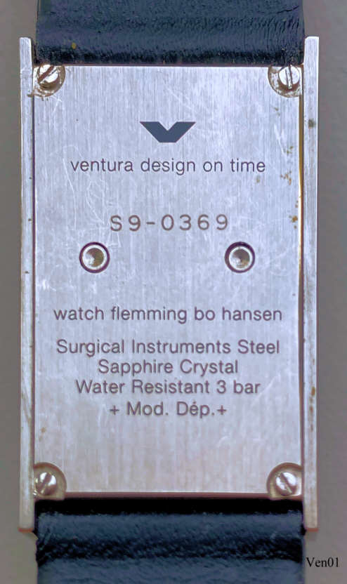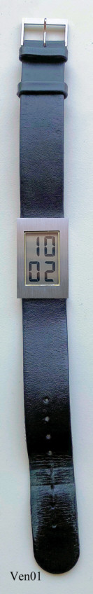 Dies ist die “Watch”, eine moderne LCD Digitaluhr vom Designer Fleming Bo Hansen, die im Metropolitan Museum of Art als Beispiel für gutes Design ausgestellt ist. Hergestellt wird sie von der Firma Ventura. Beschriftet hinten: “Ventura Design on Time, S9-0369, Watch Fleming Bo Hansen, Surgical instruments Steel, Sapphire Chrystal, Water Resistant 3 Bar, +Mod Dèp+”.