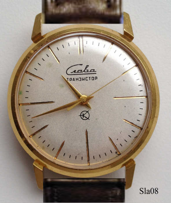 Slava ( meaning "Glory") watches were relatively inexpensive, classic "civil" Russian watches commonly referred to as "Slava Lava!". The Slava factory (known originally as the Second Moscow Watch Factory) was the second non-military watch maker established in the Soviet Union, in 1924. The watches of this brand have always been meant for civilian consumption, without military or aerospace pretensions. Slava's own mechanical movements feature two mainspring barrels coupled together with an idler gear. There are many versions of the movement including manual wind 2414 and 2428 (double date) and self-winding 2416 and 2427 (double date). The movements are unfortunately quite sensitive to shocks due to thin balance staff. Other frequent problems include premature wear of rotor bearing and the clutch driving the hands (not a typical cannon pinion). Also the date indicator malfunctions are common. The movements are thus considered unreliable, especially compared to other russian calibres. Earlier the 2nd Moscow Factory produced movements derived from an old pre-war French movement, the Lip "T-15" (also some Poljot movements were derived from this French brand), and produced under license (brands Pobeda and Start). In addition to that, for relative brief periods, Slava also produced its own electronic movements using tuning fork and quartz systems. Some Slava watches were produced under Sekonda brand names. (Wikipedia)