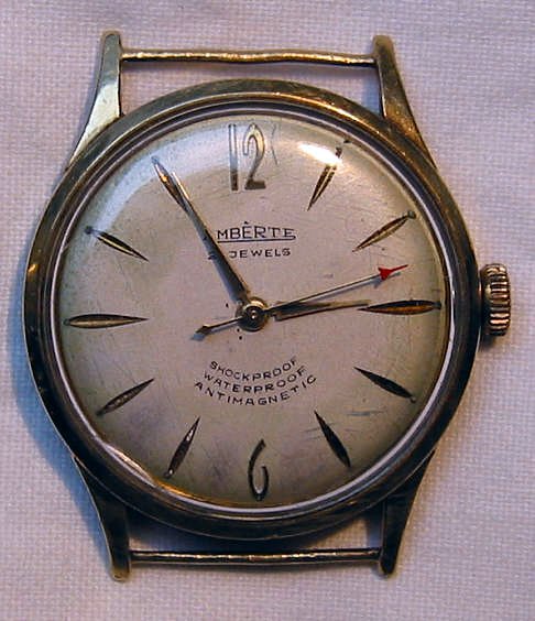 Dies ist eine Ambèrte Handaufzugs Uhrmit vergoldetem Gehäuse. Beschriftet:”Ambèrte, 21 Jewels, Shockproof, Waterproof, Antimagnetic” . Gehäuse vergoldet mit festen Stegen für das Armband. Diese Uhr habe ich von