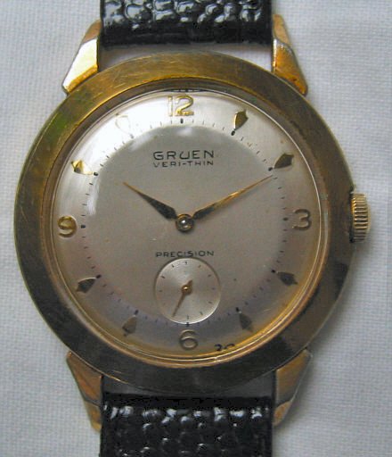 Kaliber 415, Inschrift auf dem Innendeckel:” Cased and Timed by Gruen Watch Co.,10K A.G.P Bezel, Guildite Back, F71968, 415-966” Inschrift auf dem Werk:”Gruen Watch Co. Swiss, Seventeen 17 Jewels, 425, unadjusted”