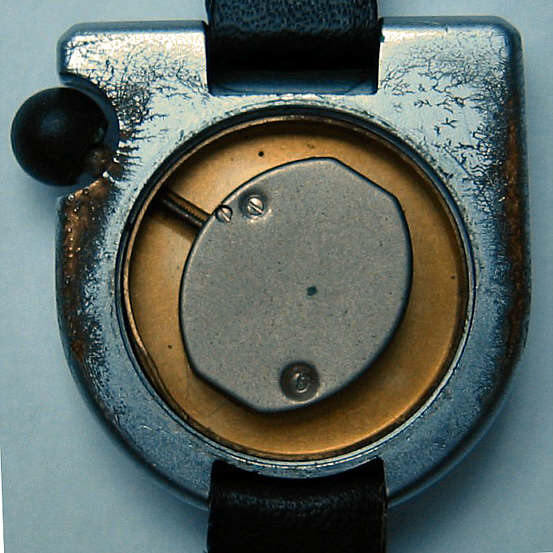 In der Abbildung ist ein falsches Armband gezeigt, das richtige ist so breit wie die Uhr. Beschriftet:”Dugena Lip”, Rückseite:”931225, 80, 433 98”