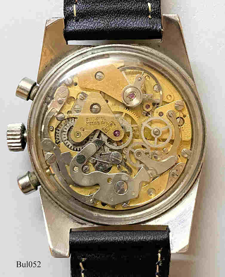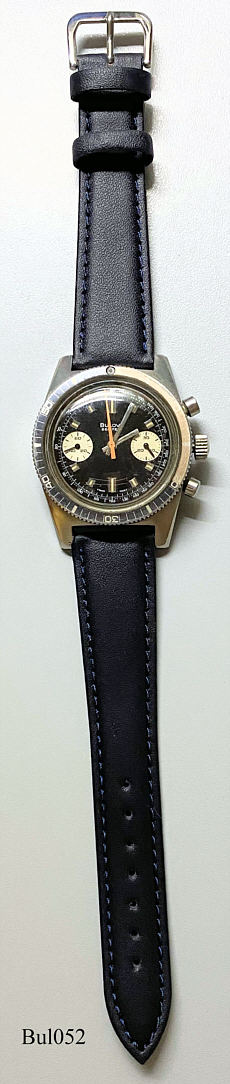 A Bulova Handwind “Deep Sea” Chronograph with stainless steel case, black dial and chapter ring, signed front: “Bulova, 666 Feet, Swiss Made”, inside: ”Bulova Watch Co., 14EB, N3, seventeen (17) Jewels, unadjusted”, Caliber 14EB, date of production 1973 (N3), selfmade glass back. The movement is a Valjoux 7733. Saved from scrap box and repaired by my Luxembourg friend Jos Freylinger.