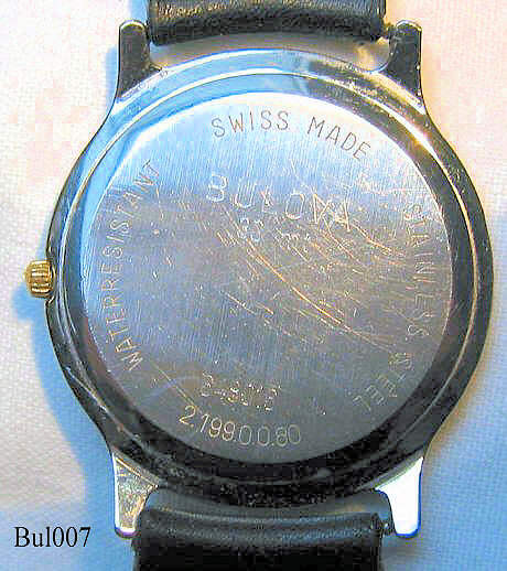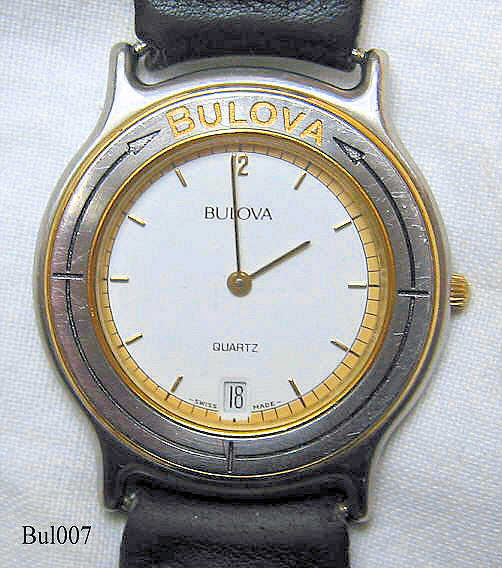 Bulova Quartz watch with white dial, Date at “6”. signed front: ”Bulova, Quartz”, back: “Water Resistant, Swiss Made, Stainless Steel, 2.199.0.0.80, 648016”, inside: ”BULOVA”, no date code.