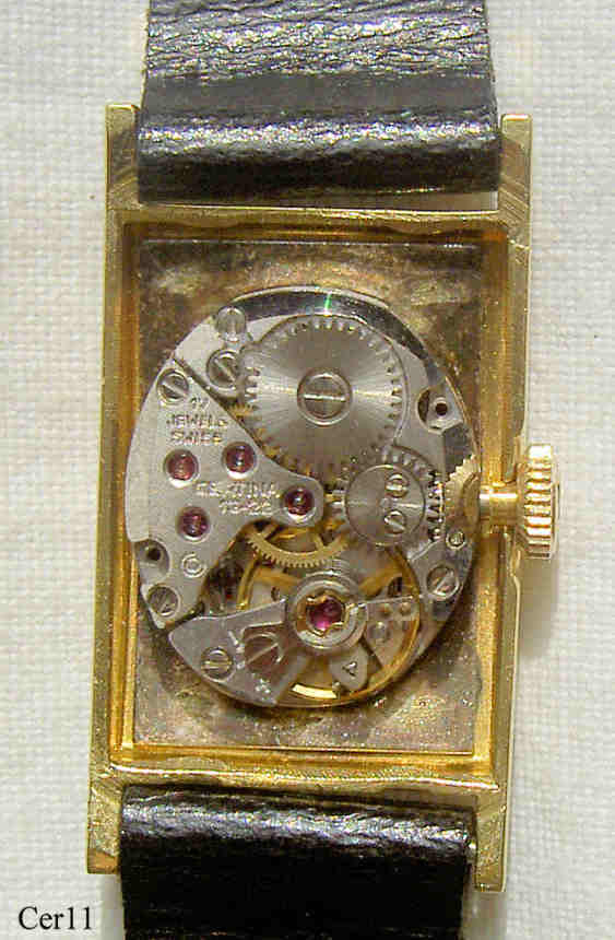 Dies ist eine wunderschöne Certina Damen Handaufzugsuhr, Caliber 13-22 mit 17 Steinen, vergoldetem Gehäuse und schwarzem Lederarmband. Beschriftet vorn: ”Certina”, innen: ”Certina, 13-22, 17 Jewels, Swiss”, hinten: ”0806 899, 7244310 ”. Diese Uhr ist ein Geschenk von Jos Freylinger bei seinem Besuch in Taaken 2006.