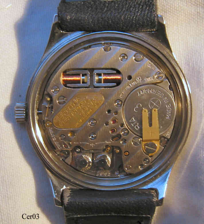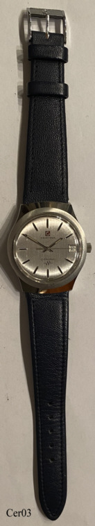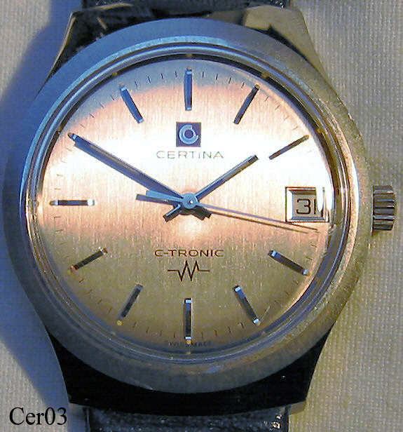 A Certina Certronic tuning fork watch with calendar at 3 in stainless steel, Movement N° 8926494, Caliber 29-151, ESA 9162, with black leather band.. Signed front: ”Certina, Certronic”, inside: ”Certina, Certronic, 29-151, unadjusted”, back: ”8101 001, 8926494”.