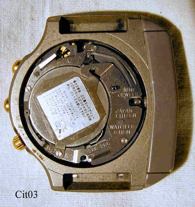 Dies ist eine Citizen Radio Controlled Titan Uhr, Citizen Caliber 8415, Referenz Nr.: C70082TA, Beschriftet: ”CITIZEN, Radio Controlled, Titanium, Multi Channel ”, Rückseite: ”Citizen, Watch Co., Waterresist, Base Titanium Tiyp, BZT G133 673E, 8415 - C70082TA, 401287, GN-4-8, Japan -> 1”, innen: “Nine Jewels, Japan, Citizen Watch Co., 8415M, 280206”. Titan Gehäuse, Datum bei der 3. Diese Uhr wird in Deutschland durch den Zeitsender DCF77 synchronisiert und hat damit immer die Referenz Zeit der Atomuhr in Braunschweig.