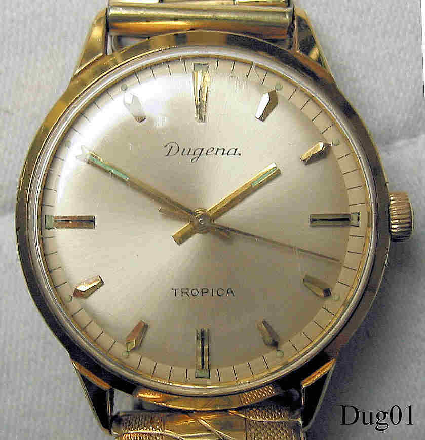 A Dugena Tropica handwind watch. Signed front: “Dugena, Tropica”, back: ”DUGENA, 21765”