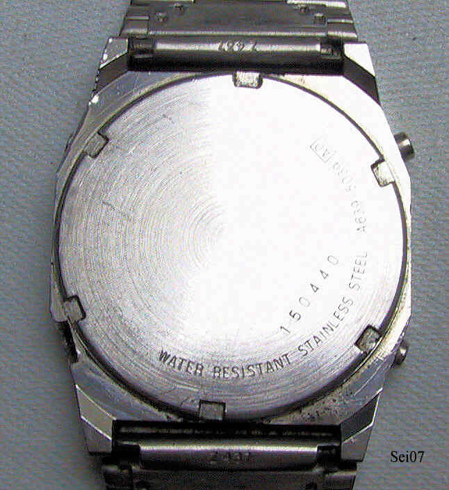Dies ist ein Seiko Alarm Chronograph mit diversen Funktionen wie Wecker, Stoppuhr, Datum etc. Beschriftung:” 150440, Water resistant, Stainless steel, A639-5039 A0“ mit verschraubtem Boden und Metall- Gliederarmband.