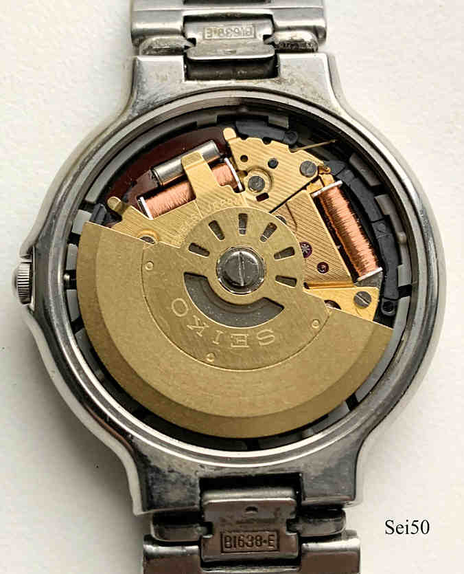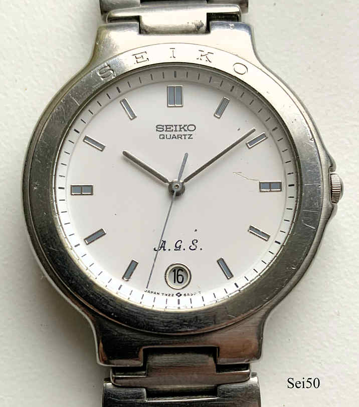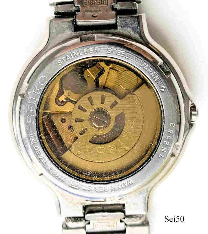 Dies ist eine Edelstahl Seiko Herrenuhr mit Automatic Generating System, die erste Version der Uhren mit mechanisch angetriebenem Generator, der den Strom für den Kondensator erzeugt. Später war das Logo dann “Kinetik”. Datum bei der 6. Beschriftung: ”SEIKO, A.G.S., Japan 7M22-6A30 T 2“, hinten: ”SEIKO, Water Resist. AD, Stainless Steel, Japan, 7M22-6A30 R1, 7N2583” mit Glasboden und Metallarmband.
