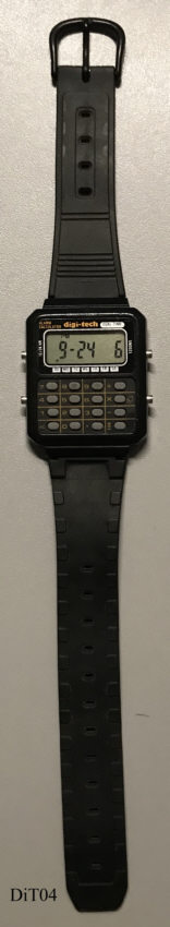 .A DigiTech Alarm Calculator watch with two time zones in plastic case. Signed front: “Digi-Tech, Alarm Calculator, Dual Time”, Inside: ”RC17”, back: ” ”, Caliber RC17. Plastic band