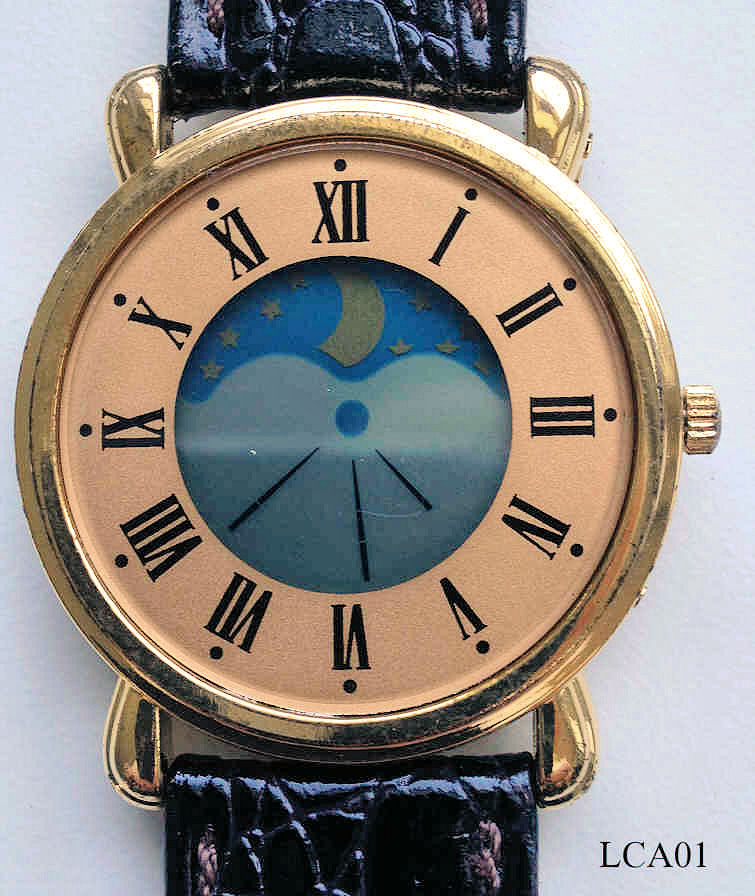 A Ladies Quartz watch with LCD dial and pointer, unknown origin. Signed front: “”, back: “”, inside: “C-438”. Brown leather band.