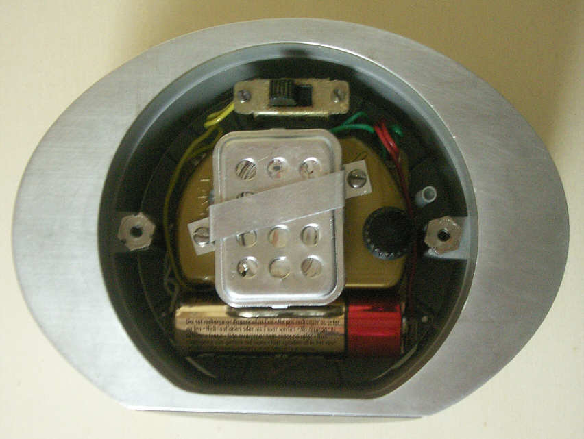 Eine Richard Alarm Schreibtischuhr in einem ovalen Aluminium Gehäuse. Caliber ETA 9123, ein Werk auf dem ATO Prinzip. Beschriftet vor “Richard, Alarm, Swissonic, Brasilia, 671”, hinten: “170, Swiss Made, RSO. DES. PAT. PEND”€¯, Blaues Zifferblatt, Datum bei der “6”. |