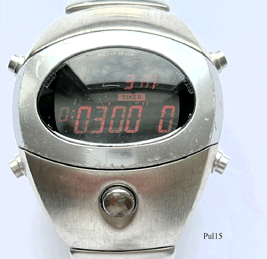 Ein Pulsar Herren Digital Chronograph mit LCD Anzeige. Beschriftet vorn: “ ”, hinten: ”Pulsar,Water Resistant 10 Bar, St. Steel - Base Metal, W671-4170 A0, China, 080181”, innen: ”W671A”. Kaliber Pulsar W671A. Base Metall Gehäuse, Edelstahl Glieder Band.