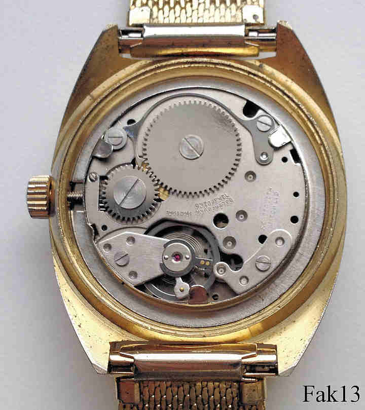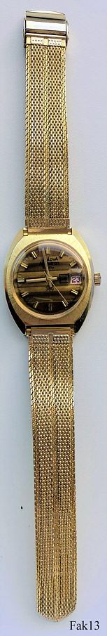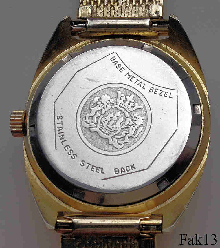 Dies ist der recht ungeschickte Versuch eine Bulova Accutron Stimmgabeluhr zu imitieren. Erstaunlich, da hier ein elektronisches Werk durch ein billiges mechanisches Werk ersetzt wurde, wo doch sonst eher aufwendige mechanische Werke durch einfache Quartz Werke nachgebildet werden. Diese Uhr hat selbst äusserlich wenig Ähnlickeit mit einer Bulova Accutron. Beschriftet vorn: “Bulova, Accutron, Electra,360”, innen: “One 1 Jewel, Swiss Made, Unadjusted, Constructa Watch Ltd.”, hinten: “Base Metal Bezel, Stainless Steel Back”.
