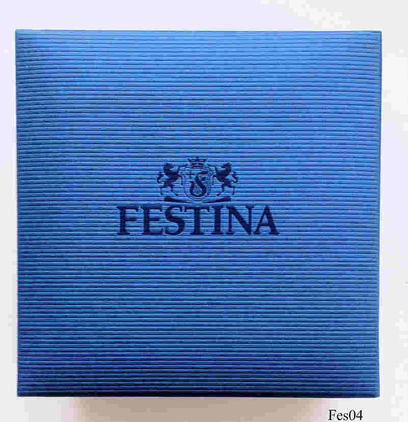 Ein Chronograph von Festina mit bordeaux rotem Zifferblatt und drei Chronographenskalen im selben rot. Beschriftet: “Festina, Alarm Chronograph, Water Resist 100M”, hinten: ”Festina, Water Resistant 10 ATM, All Stainless Steel, 6202”, innen: “Miyota Co., No Jewels, 3S10, Japan”. Datum bei der 4, bordeauxrotes Lederarmband.