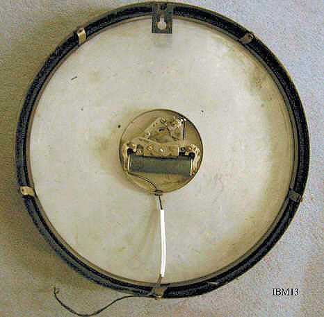 Diese IBM Bahnhofsuhr hing auf dem Berliner Hauptbahnhof. Sie wird von einer Mutteruhr gesteuert und hat ein IBM Tochteruhrwerk. Das Gehäuse ist aus Stahlblech, das Zifferblatt aus Aluminiumblech. |