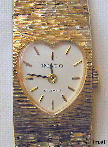 This heartshaped Imado ladies watch has a nice case integrated into a metal band. The movement has 17 Jewels. Signed: “Imado, 17 Jewels”. Caliber Chaika 1301