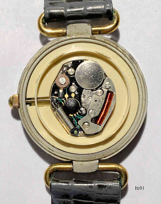 Eine sehr schöne Rockwatch der Marke Itrako mit Quartzwerk. Das Gehäuse ist aus Gußstein. Beschriftung vorn: “Itrako, Quartz, Swiss Made”, innen: ”AV, ISA 321, One 1 Jewel, 1, Unadjusted, Swiss”, hinten: “Waterproof, Swiss Made, Stainless Steel Back, 4013, Quartz, 7046”, im Rückdeckel: “Statec LTD, Swiss Made”.. Uhrwerk Kaliber ISA 321. Graues Lederarmband