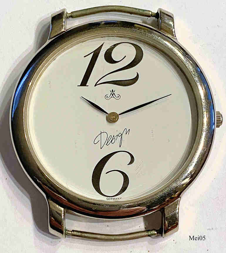A simple dresswatch of Meister-Anker with Quartz movement. The case is made of base metal. Signed front: “Design, Germany”, inside: ”France Ebauche,6320B, No Jewels, Unadjusted”, back: “834 142 2, , 02, 9386C”.Movement Caliber France Ebauche 6320B.