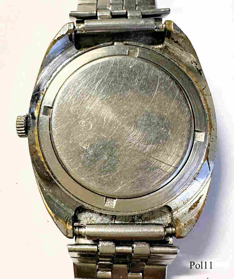 A Poljot handwind watch to memorize the Olympic games 1980 in Moscow. Kalendar at 3.. Signed front: ”Poljot, CCCP”, back: ” ”, Caliber Poljot 2614.2H, Stainless steel band.