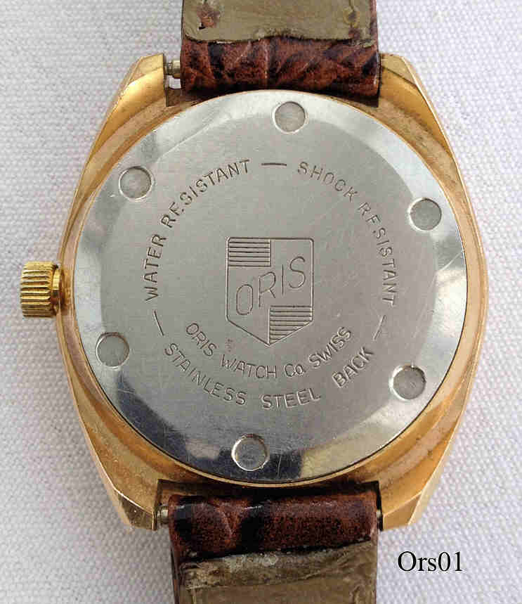 Eine Quartz Uhr der schweizer Marke Oris mit dem frühen Quartzwerk der SSiH Kaliber 5500. Base Metal Gehäuse und Stainless Steel Back. Beschriftung vorn:” Oris, Quartz, Swiss Made”, Rückseite:” Stainless Steel Back, Water Resistant, Shock Resistant, Oris Watch Co Swiss”, innen: “Unadjusted, Three 3 Jewels”, Braunes Lederarmband, Datum bei der 3.