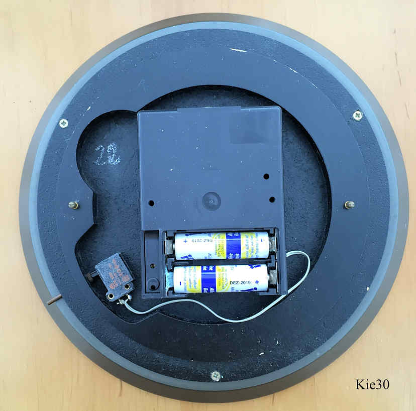 A Kienzle Radio Controlled clock in a futuristic satellite case. White dial, LCD window for the date display. Signed front: “Kienzle, Satellit, Radio Controlled, by DCF 77” back: “ “.