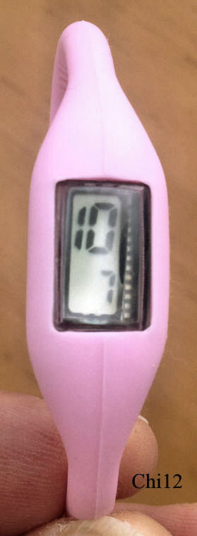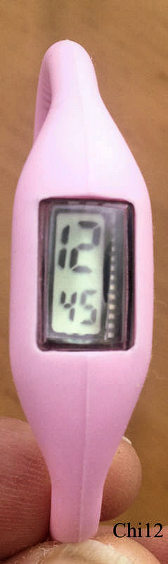 A funny digital watch from China in 9 different colors. It shows the time and the date even alternating and is waterproof. The case is made of colored silicon, the band is integrated and can not be adjusted. .