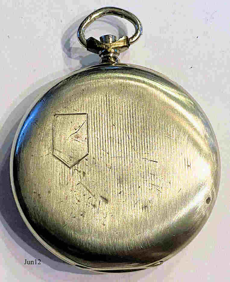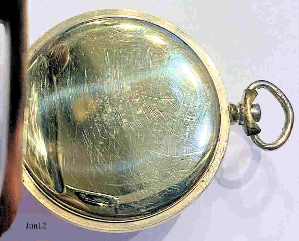 Eine einfache Junghans Taschenuhr mit Base Metal Gehäuse. Zeiger und Ziffern mit Leuchtfarbe. Beschriftet außen: “Junghans, 15 Rubis” Innen: ”47b/1” |
