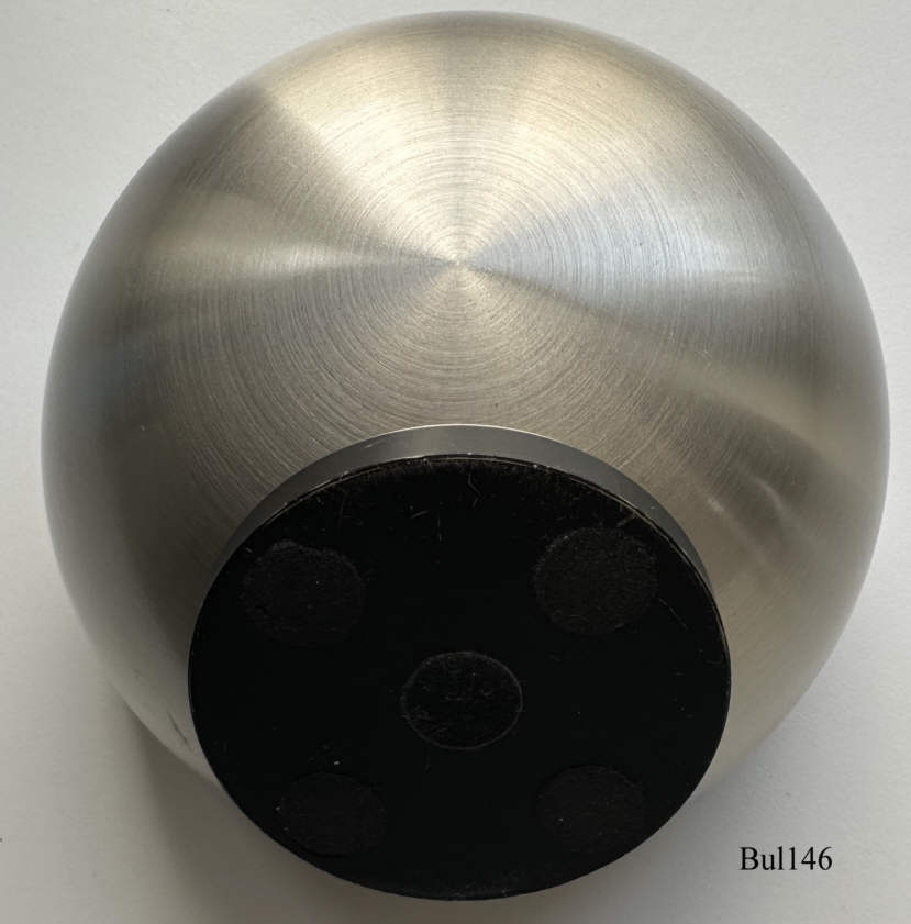 Bulova 214 mounted into a steel ball desk clock, signed front: ”€¯Bulova, Accutron”, back: no signature, inside: ”Bulova, Waterproof, Patented, Stainless Steel Back, M7”€¯, Caliber 2140, Manufacturing date 1967 (M7), click-on case back, clip lever on the back to adjust the time. It is a normal 214 movement as it was designed for watches, only mounted into a desk clock. €¯