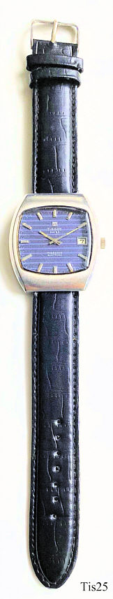 Eine Tissot Tissonic Stimmgabeluhr mit Metall Glieder Armband. Caliber Tissot 2010, ETA 9162, Werknummer , Gehäuse Nr. 40.800 in Base Metal. Geschraubter Edelstahlboden, keine Beschriftung auf der Rückseite. Beschriftet vorn: “Tissot, Swiss, Tissonic, Electronic”.