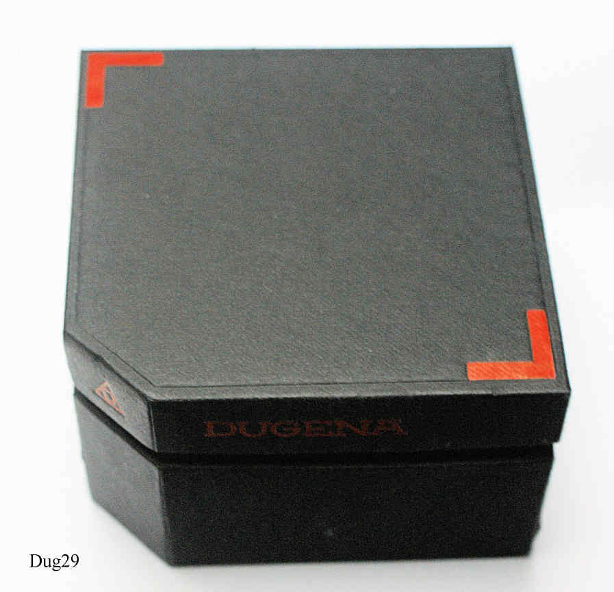Eine Dugena Herren Quartzuhr mit Sound und Vibrations Alarm, Stainless Steel Gehäuse. Beschriftung vorn: “Dugena, Sound, Vibration, WR100”, hinten: ”Water Resistant, 50M, Stainless Steel, 1895320, 42, Cal. AW00”, innen: ”AW00, unadjusted”. Edelstahl Armband mit Dugena Faltschließe. Auf dem kleinen Zifferblatt wird die Alarmzeit eingestellt. Kaliber Miyota AW00