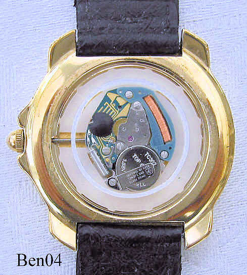 Benetton by Bulova World Time, signed front: ”United Colors of Benetton by Bulova”, back: ”United Colors of Benetton by Bulova, Stainless Steel Back, Water Resistant, Base Metal Bezel, Mod. Dep.”, inside: ”Swiss parts, one Jewel, Assy in Thailand”, black Leather strap with neutral clasp.