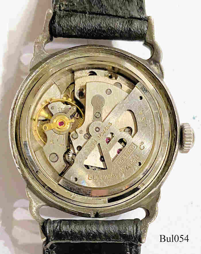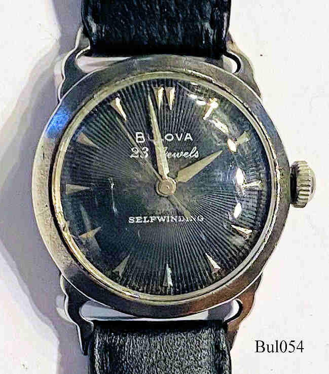 Eine sehr schöne automatic Uhr in sterlingsilbernem Gehäuse, 23 Jewels, Beschriftet vorn: ”Bulova, 23 Jewels, Selfwinding”, hinten: “8331075, BULOVA, Stainless Steel Back, Antimagnetic, Shock Resistant, Self Winding, Water Tight”, innen: “Bulova Watch Co., USA, 23 Jewels”, Caliber 10BOAC, Herstelldatum 1954 (L4). Modell 23 B