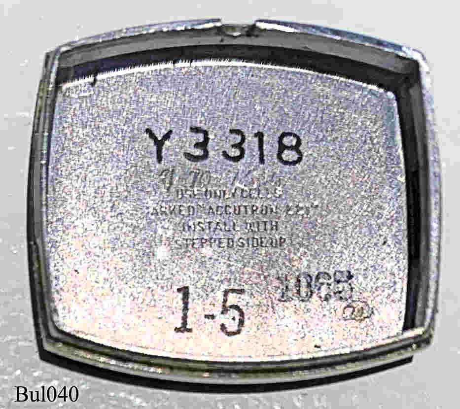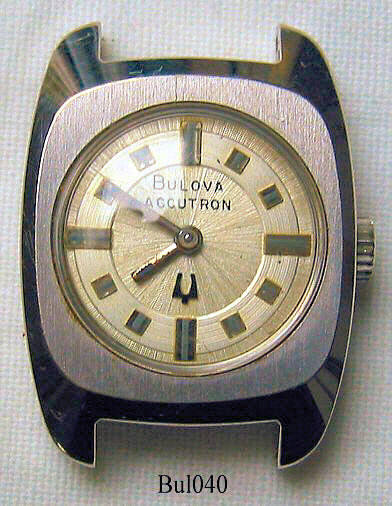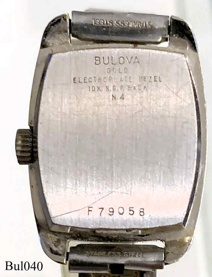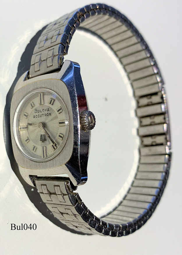 Bulova Ladies Accutron with white gold electroplate bezel, signed front: “Bulova, Accutron”, back: “Bulova, Gold, Electroplate Bezel, 10K R.G.P. Back, N4, F79058”, inside: “Bulova, USA, 2210, N4”, Caliber 2210, date of production 1974 (N4), snap-on back.