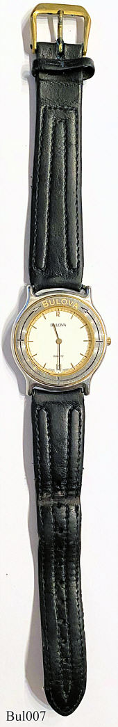 Bulova Quartz watch with white dial, Date at “6”. signed front: ”Bulova, Quartz”, back: “Water Resistant, Swiss Made, Stainless Steel, 2.199.0.0.80, 648016”, inside: ”BULOVA”, no date code.