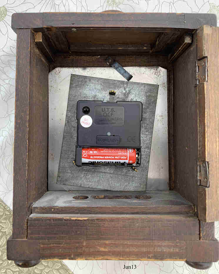 A very nice Junghans alarm clock in wooden cabinet. Blue hands, silverdial with stylish numbers. I installed a radio controlled movement, the Original movement is still available. |