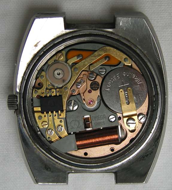 Eine Omega Megaquartz Uhr, Werk Caliber 1310, 8 Steine, Werknummer 3747022, Gehäuse Nr. 196033 - 3960822, Edelstahlgehäuse Beschriftet: ”Omega, Megaquartz 32KHz, Genève”, innen: ”Eight 8 Jewels, unadjusted, 3747022”. Datum und Kalender bei der 3.