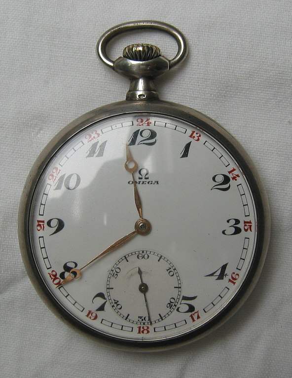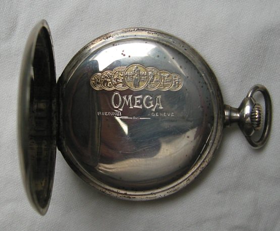 An Omega Pocketwatch with silver Case and two backs. signed external back: “ 0,800, 7349263” inside back:” Omega, Bienne, Geneve, 7349263, 0.800” Movement: