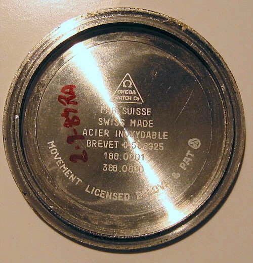 Speedsonic, f300 Hz, Swiss Made”, innen:” Twelve 12 Jewels, Omega, 1255, unadjusted, 38417176”, im Deckel:”Omega Watch Co., Fab Suisse, Swiss Made, Acier inoxydable, Brevet