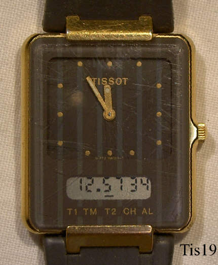 Tissot, T 372 Swiss T, T1, TM, T2, CH, AL” hinten:” TISSOT, Twotimer, Swiss Quartz, Waterresistant 3 ATM, Stainless Steel, Back, D 372667 K1P”.Kautschuk Armband.