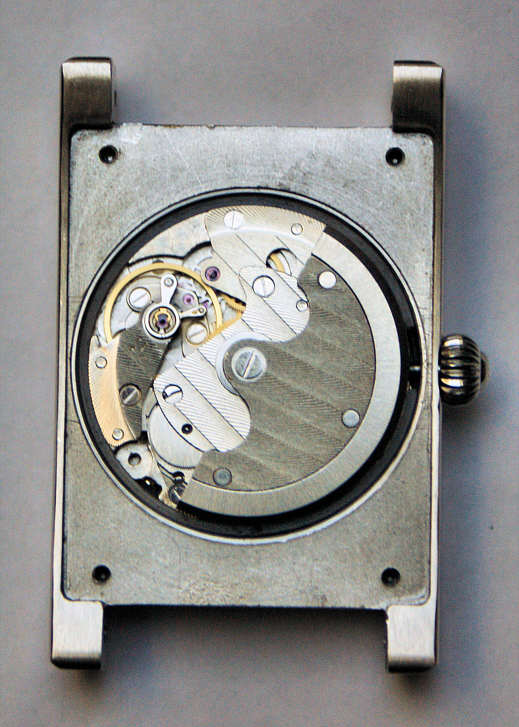 A mechanical digital watch by Alpha in Retro Style. Signed front: ”Hour, Minute”, back: ”Alpha, 1993, Jumping Hour Mechanism, Stainless Steel 316L, Automatic Winding, Water Proof, 518/1000, 623-SG2709”, Metal case.