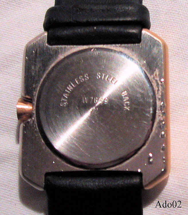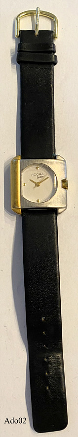 A very individual dualtone design watch from Adora. Signed front: ”ADORA fashion”, back:”Stainless Steel Back, W764”, inside: ”Unadjusted, Miyota Co., Japan”. Miyota Quartz Uhrwerk, Caliber Miyota 230-39.