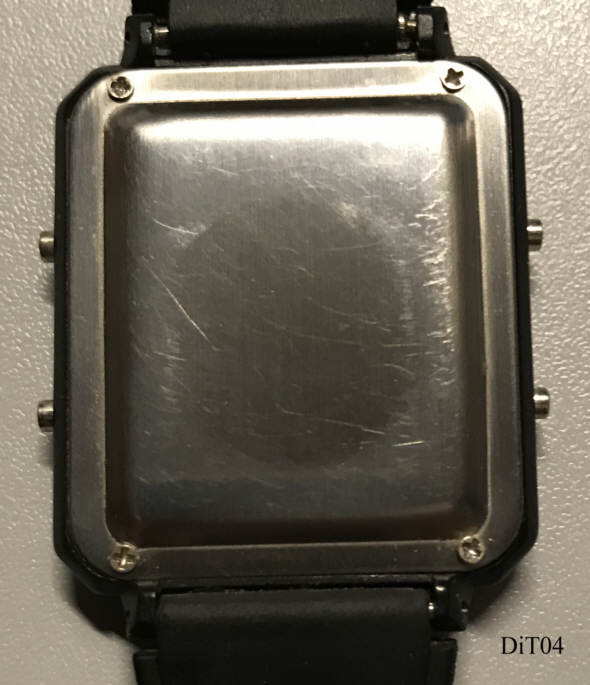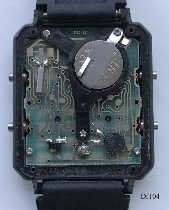 .A DigiTech Alarm Calculator watch with two time zones in plastic case. Signed front: “Digi-Tech, Alarm Calculator, Dual Time”, Inside: ”RC17”, back: ” ”, Caliber RC17. Plastic band