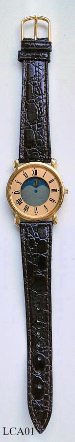 A Ladies Quartz watch with LCD dial and pointer, unknown origin. Signed front: “”, back: “”, inside: “C-438”. Brown leather band.