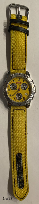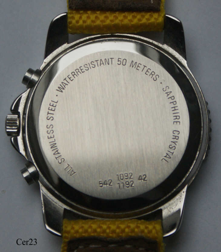 Dies ist ein Certina Attack Quartz Chronograph, beschriftet: ”Certina, Attack, 50 Meters, Swiss Made”, innen: ”Twentytwo 22 Jewels, 251.272, Swiss”, hinten: ”542 1092 1192 42, All Stainless Steel, Water Resistant 50 Meters, Sapphire Chrystal”. Gehäuse Edelstahl, geschraubter Boden, Kaliber ESA 252.272. Diese Uhr wurde beim großen Preis von Monaco 1988 verkauft