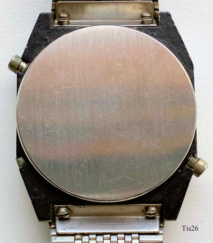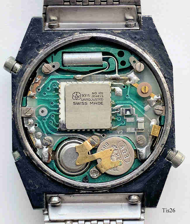 Ein Tissot LCD Chronograph . Caliber ETA 9315, Edelstahlgehäuse, Beschriftet vorn: ”Quartz, Tissot, Swiss”, innen: “ESA 9315, No (0) Jewel, Unadjusted, Swiss Made”, hinten:””. Edelstahlband