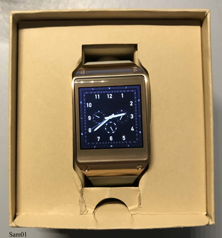 Die Erste Smart Watch von Samsung zur Bluetooth Koppelung mit bestimmten Samsung Handys. Die Uhr bietet eingeschränkte Handy Funktionen an. Der Accu wird in der Ladeschale über die USB Schnittstelle geladen. Das Gehäuse ist in Rosegold Metall und sehr wertig verarbeitet. Die Bedienung erfolgt über den Touch screen der Uhr.
