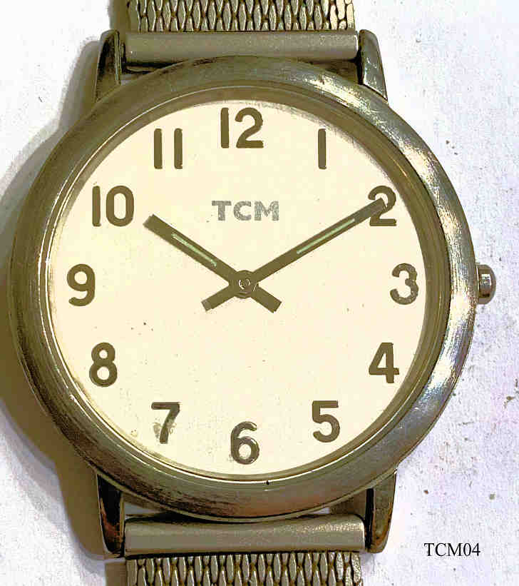 A Tchibo watch in simple design withwhite dial. Stainless Steel case,milanaise band.White dial, no date. Signed front: ”TCM”, hinten: ”TCM, 69736, Stainless Steel Back, Shock Resistant, Wasserdicht 30m, Batterie Type 321”, innen: “No Jewels, SIIO, VX50E, Japan”