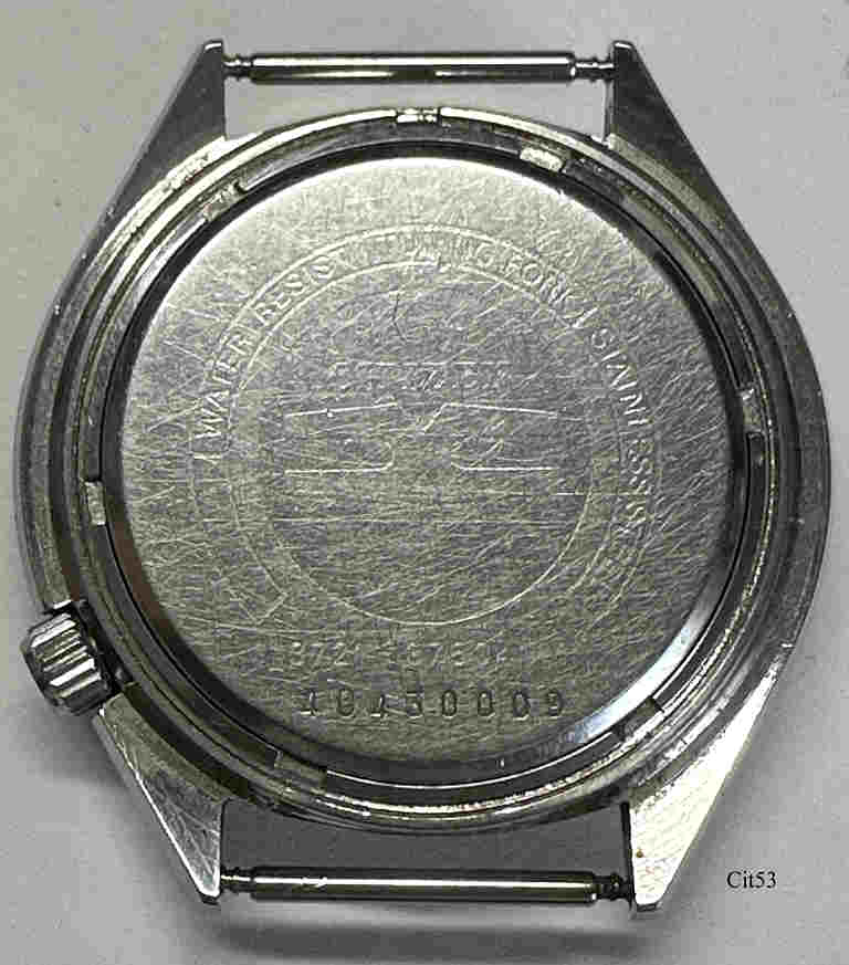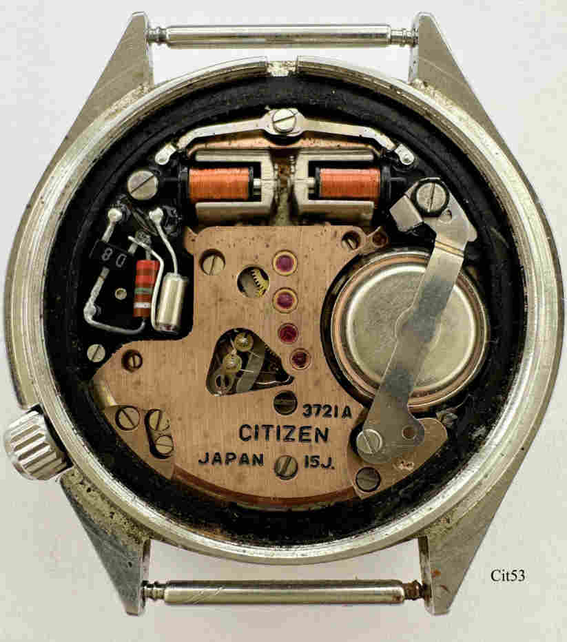 Dies ist eine Citizen Hisonic, neben der Accutron und der Unisonic von Universal Genève die einzige Stimmgabeluhr mit dem Bulova 2180 Werk. Werk N° 40430009, Citizen Caliber 3721A, Referenz Nr.: 3721-375041Y, Beschriftet vorn: ”CITIZEN, Tuning Fork, Hisonic, Japan 3720-375014-Y”, Rückseite: ”Water Resist, Tuning Fork, Stainless Steel, Citizen, 3721-375041-Y, 40430009”, innen: “3721A, Citizen, Japan, 15J”, Edelstahl Gehäuse. Citizen stellte die Bulova Stimmgabelwerke für den Fern Ost Markt für Bulova her.