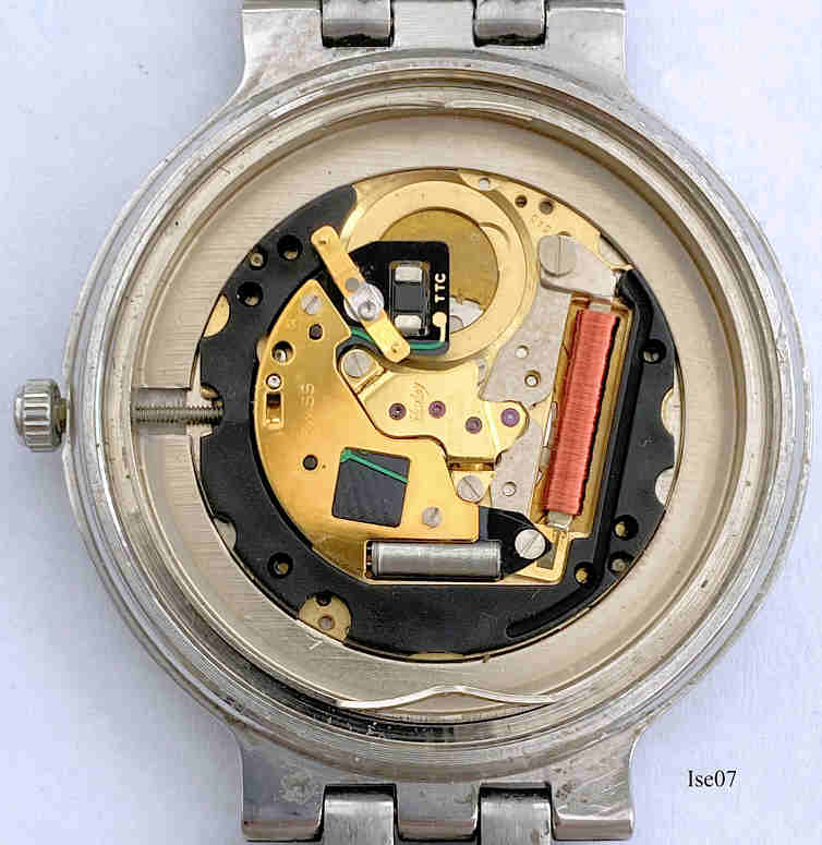 Eine Iseco TTC Longlife Uhr mit schlichtem, grauen Zifferblatt, Datum bei der 6. Beschriftet vorn: “Iseco, TTC Longlife, Germany”, hinten: “Stainless Steel Back, Water Resistant 5 ATM, TTC Longlife”, innen: “Swiss, Harley, Ronda SA., Five Jewels, TTC”. Die gleiche Uhr wurde von Junghans heraus gebracht, nachdem Junghans die Nachfolge von ISECO angetreten hat. Longlife bezieht sich auf die Batterie, auf die die Firma 20 Jahre! Garantie gibt. Die ganze Rückwand ist die Batterie. Leider überstand ISECO die Garantiezeit nicht, und Junghans übernahm die Garantieverpflichtung.
